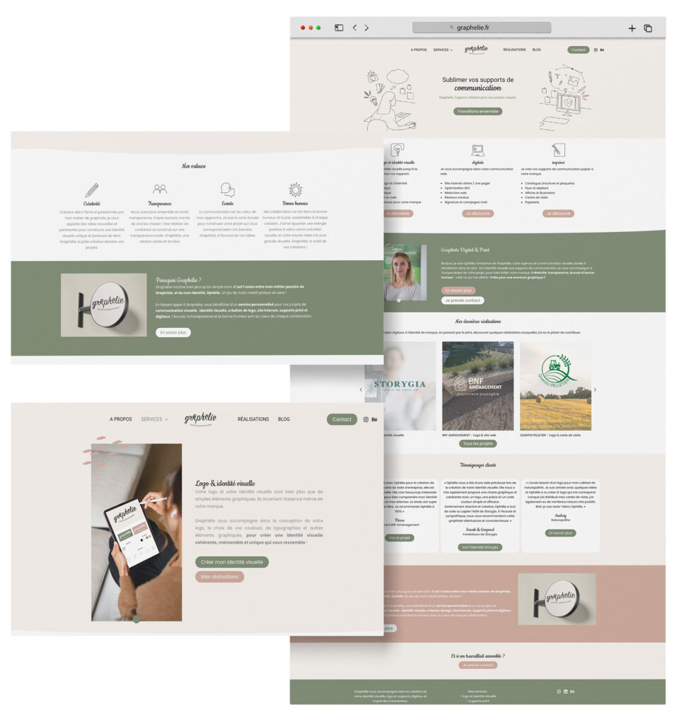 Avec Graphélie, développez un site internet performant qui reflète votre expertise et attire vos clients. Je vous accompagne de la création à l’optimisation, en vous offrant un suivi personnalisé et les outils nécessaires pour gérer votre site en toute autonomie et maîtriser votre présence digitale.
